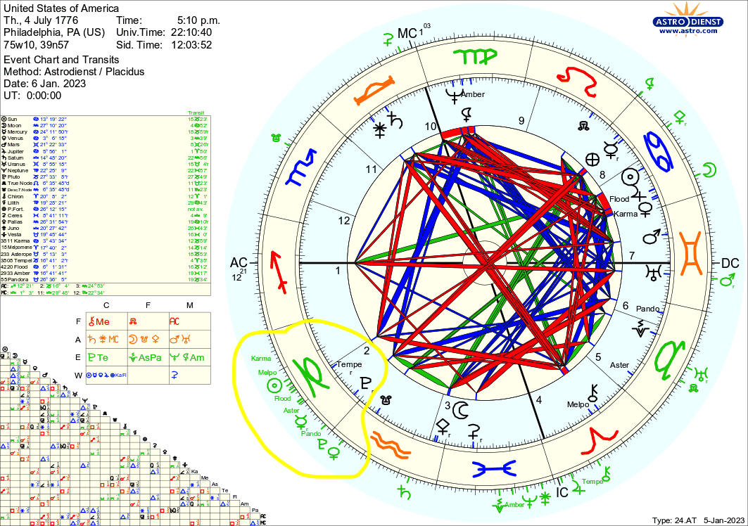 I looked at the astrology and saw that in my chart, the sun/Flood conjunction is happening at the same point as the asteroid Tempel. I’d just learned about that asteroid a couple of days earlier after dreaming that I inherited a white house. In the dream, I was told, “the house is yours.” Two days later, I was watching the same show and completely out of nowhere, a character inherited a white house and was told that the house was hers. After that, the address on the house jumped out at me — 3808 — and this led me to the asteroid Tempel and the fact that the sun would be crossing it in my chart on the full moon. That same day, I was sent the article about the water in the Cathedral of St. John the Divine, and now, whenever I see the asteroid Flood aligned with the asteroid Tempel, I just keep hearing, “a flood in the temple.” But I still don’t completely understand…all I know is that this is important and that I’m supposed to share it because over the last twelve hours, more messages have arrived like bam bam bam, revealing one asteroid after the next, all aligning with the sun and Mercury on this full moon, and all aligned with the asteroid Tempel…but not just in my chart. This is also happening in the chart for the United States of America: