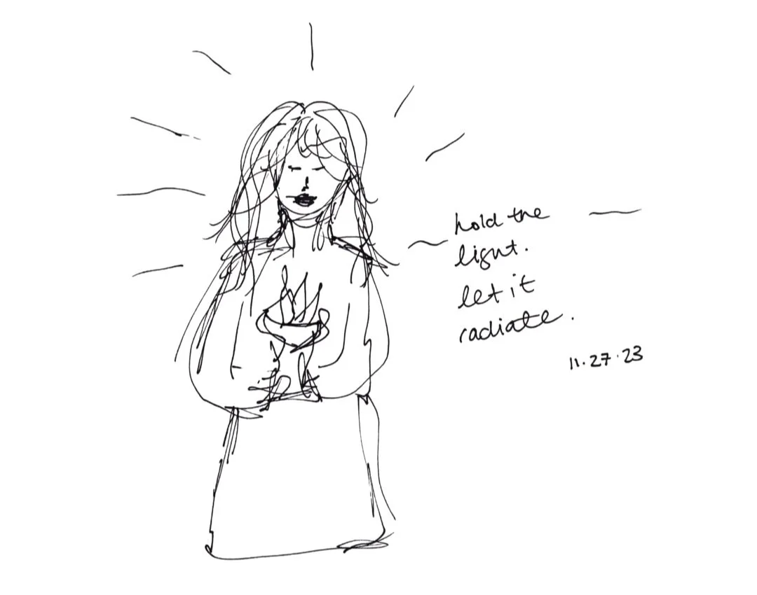 On the morning of November 17, 2023, I saw in my mind’s eye: My skin splitting at the crown of my head and peeling off my body only to reveal another body underneath. It was golden and glowing. It stepped out of its skin suit and left the skin behind, walked the surface of the earth just as it was — a glowing, golden, mostly amorphous body of light.