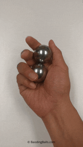 Baoding balls. That’s what they’re called. A tool in Chinese medicine. You move them between your hands like so: