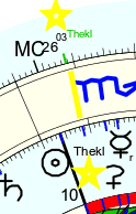 (I quickly pull up my software again to see where Thekla is now, on the day I am writing this story, and Ha! Today is the day it is perfectly aligned, at the exact same degree of my birth.)