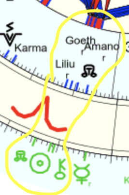 April’s eclipse will be conjunct both my personal destiny point and the collective destiny point. Two sun/north node conjunctions…not in a span of weeks (like last April), but this time, all at once. And Goethe? It will be right on my rising then.